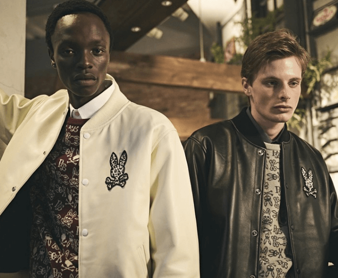 胸のサイコバニーロゴはレオパード柄のワッペンを使用し遊び心のあるロックな雰囲気になっています。