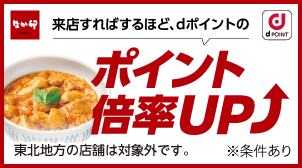 【なか卯】来店回数に応じてdポイント最大15倍!