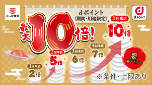 かっぱ寿司の店舗でdポイントを貯めると最大10倍!