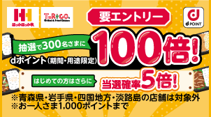 dポイントカード提示で抽選で300名様にdポイント100倍!