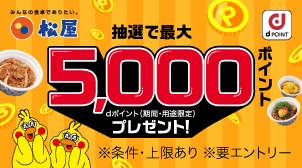 【松屋フーズ】抽選で最大5,000ポイントプレゼント!