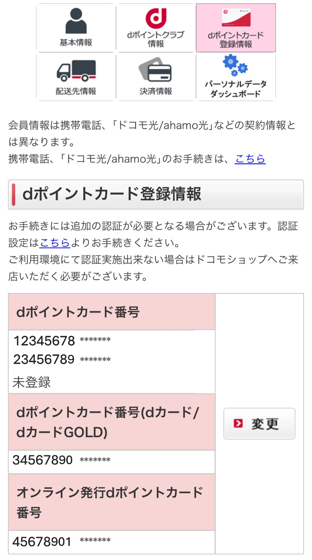 dポイントカード番号の確認方法(My docomo)※8桁のみ