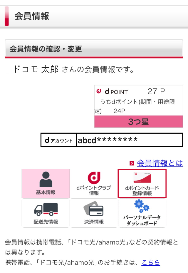 ❷dポイントカード登録情報に記載の「dポイントカード番号」を確認する